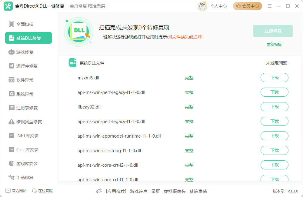 #金舟DirectX·DLL一键修复3.4.1.0下载简介