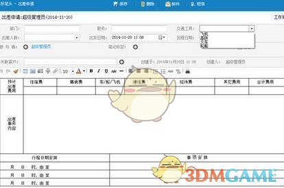 以出差申请为例,我们把相对固定的字段设置成了自定义字段