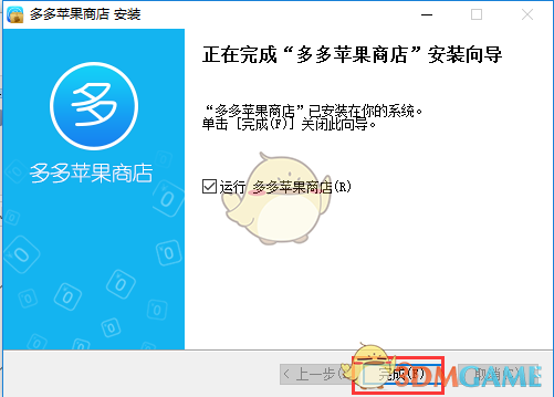 等待安装过程完成,当看到安装完成的提示后,点击完成按钮就可以打开多多苹果商店开始使用了。