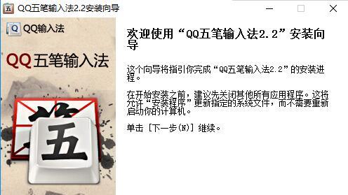安装QQ五笔输入法非常简单。首先,从本站下载安装包后双击运行,会打开安装向导窗口,点击"下一步"继续安装过程。