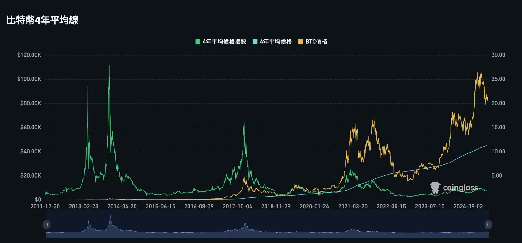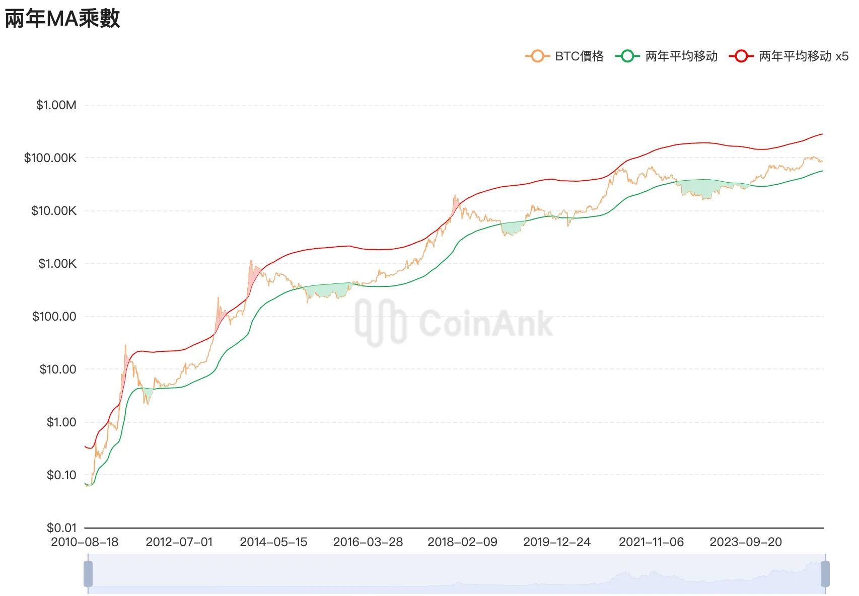 微策略是机构投资者代表,有「信仰」风向球的作用。微策略的成本线被视为机构防守线或多头破坏点。历史上几次突破微策略成本线后,常伴随资金蜂拥进场。当BTC价格达到微策略成本的2倍以上时,被视为逃顶参考值,因为这时市场可能已经过热。
