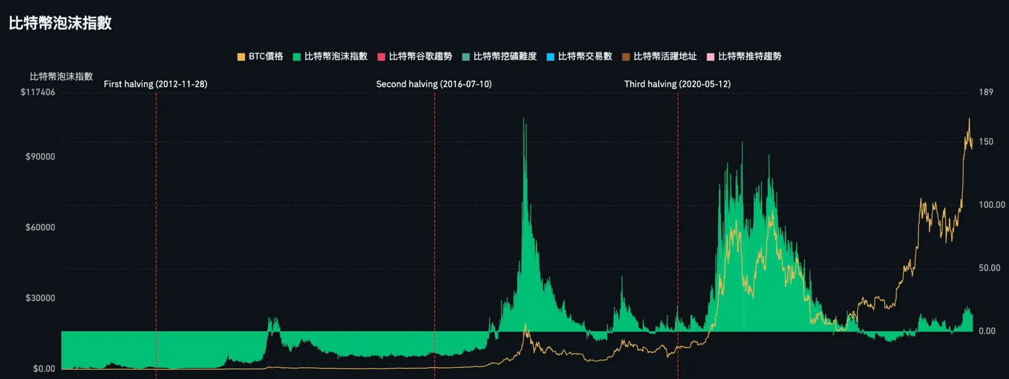 从我们整理的七大类25项牛市逃顶指标来看,当前市场虽然已经处于比特币牛市的中后段,但整体上还没有出现系统性的过热或泡沫化现象。