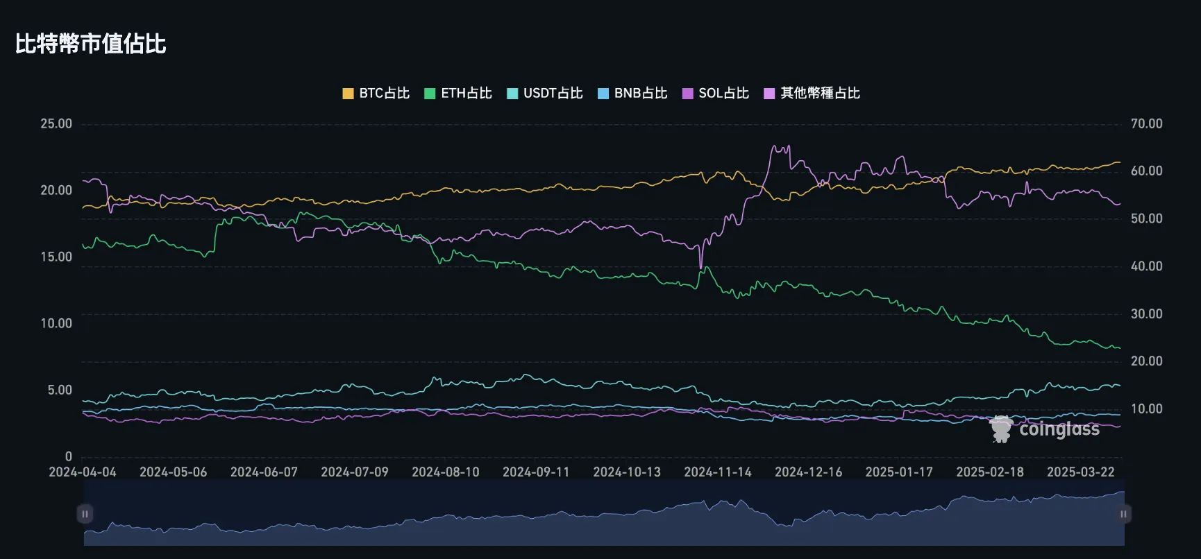 - BTC市值占比变化(BTC Dominance):BTC在整个加密货币市场中的市值占比。