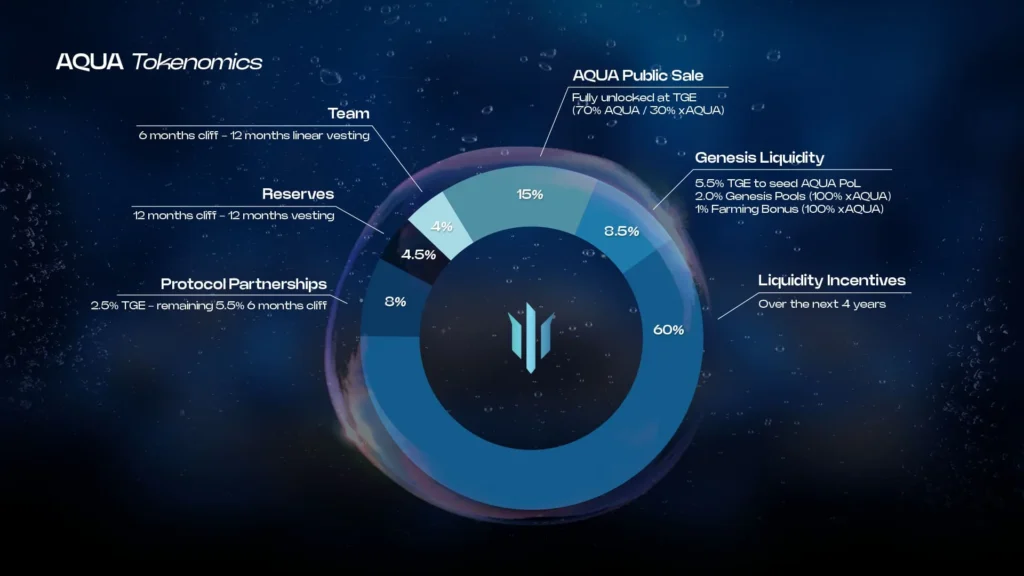 - 创世流动性8.5%:为代币上市时提供流动性,部分将以$xAQUA发放。