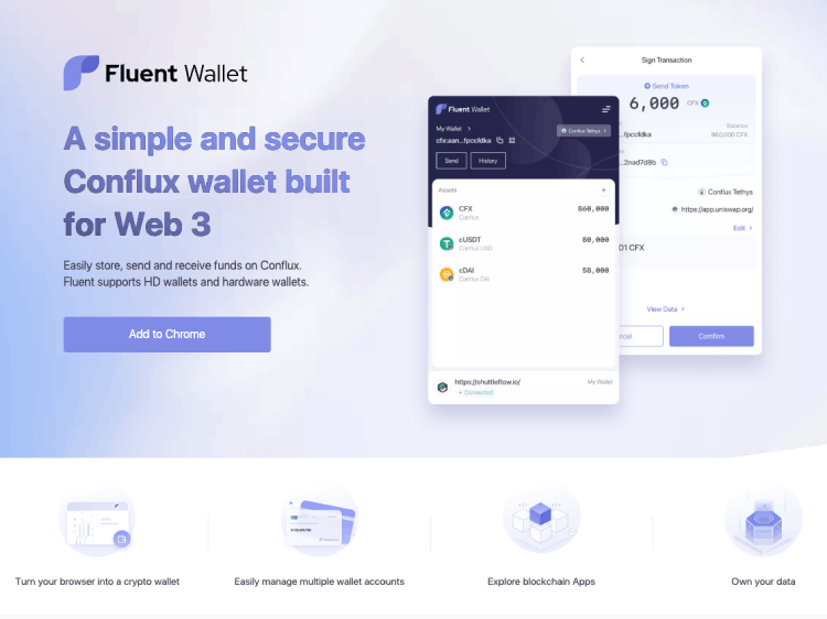 Fluent是专为Conflux网络打造的Web3钱包。它允许用户管理资产并与DApp互动。