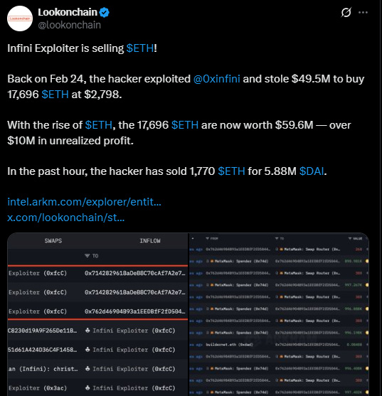 以太坊价格上涨之际,Infini Exploiter 引发抛售担忧