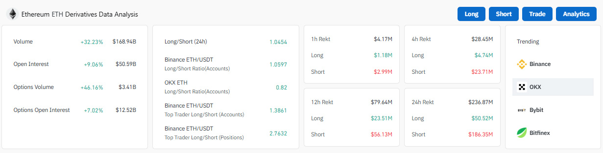 多空比率也对多头有利,币安的多空比率为1.0433,顶级交易员的多头仓位更为积极,比率高达1.061。期权市场交易量增长了46.48%,进一步表明交易员预期这波涨势还会继续。随着衍生品交易活动的增加和市场热情的高涨,以太坊的上涨速度可能会进一步加快。