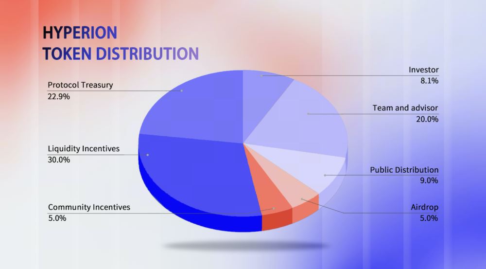 - 协议金库(22.9%):作为Hyperion协议长期发展和可持续性的储备资金,保留给未来社区提案使用