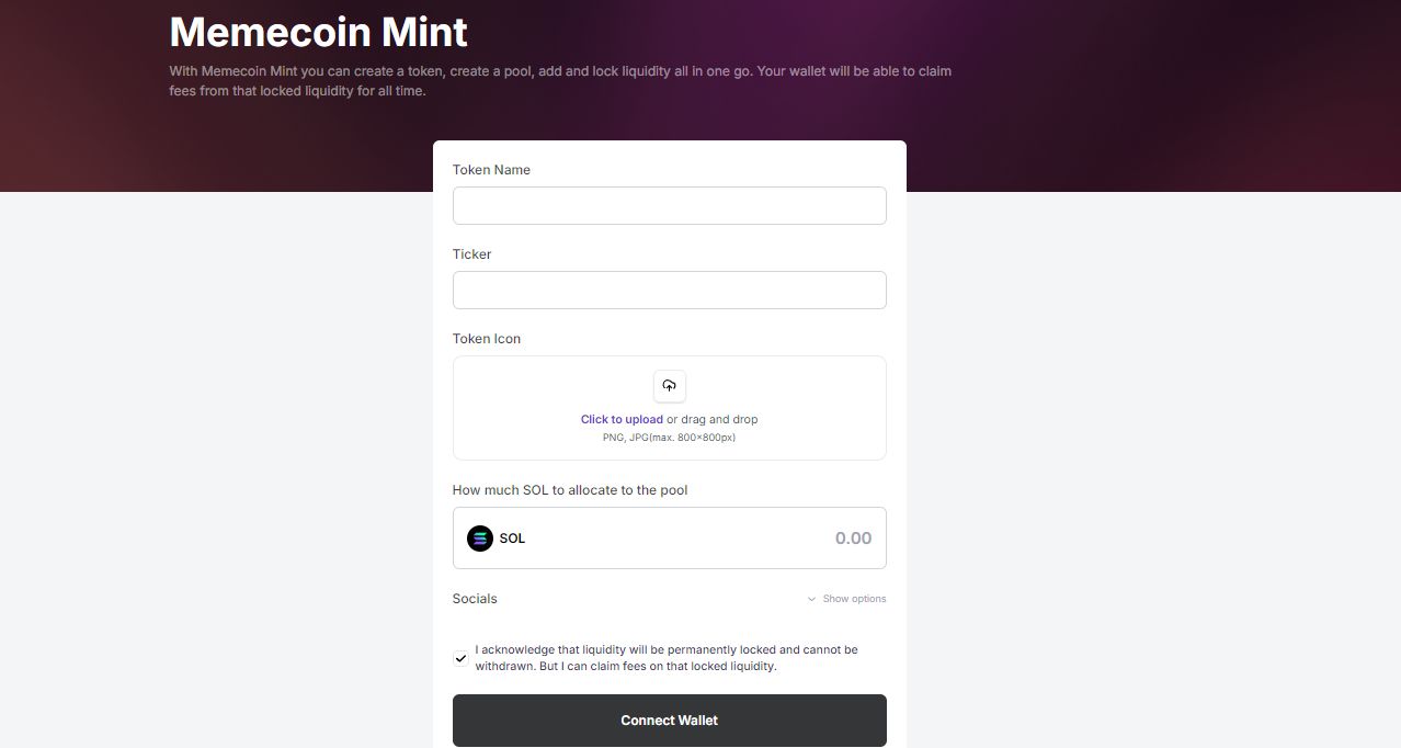用户可以通过Meteora的迷因币铸造功能,一次性完成创建代币、设置池并添加和锁仓流动性的过程。具体步骤包括访问迷因币铸造页面、输入代币信息、上传图标、设置池参数等。