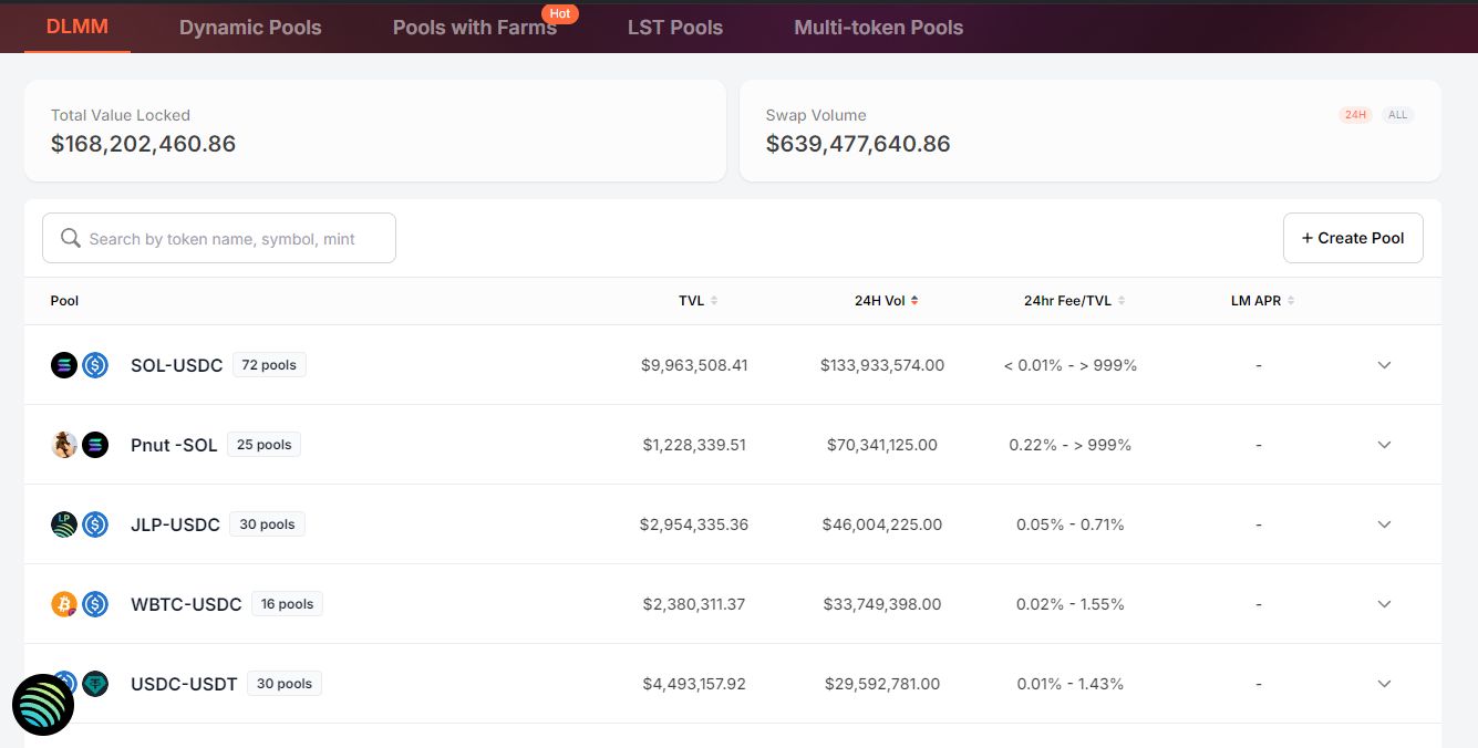 Meteora旧名为Mercurial Finance,自2021年营运至今。其背后投资单位包含Solana Foundation及投资过Pump.fun的Alliance DAO。该平台主要机制包含DLMM (动态流动性做市商,Dynamic Liquidity Market Maker)、动态AMM池、动态LST池、多币稳定池等。