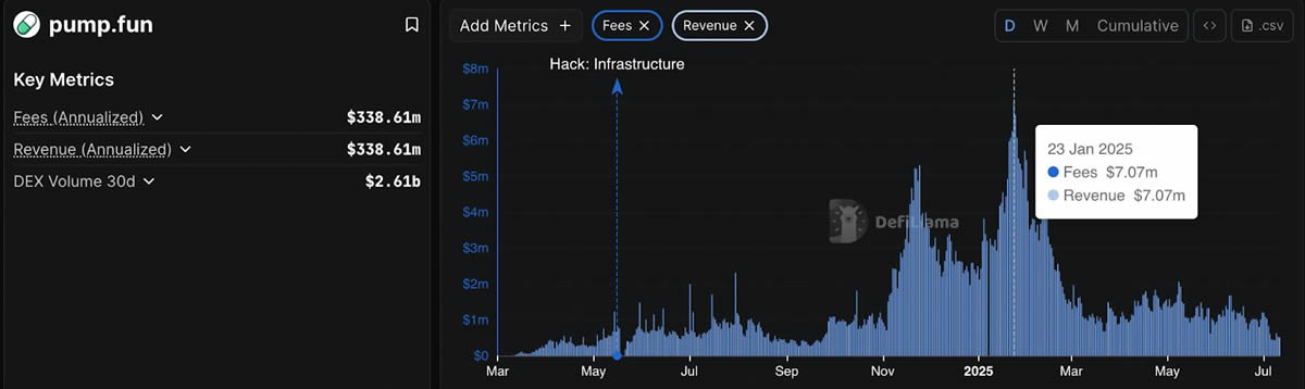 该平台的低成本、一键代币创建模型(发行一枚代币的成本不到2美元)推动了巨大的日交易量,使Pump.fun成为Solana生态系统中最赚钱、最活跃的协议之一。
