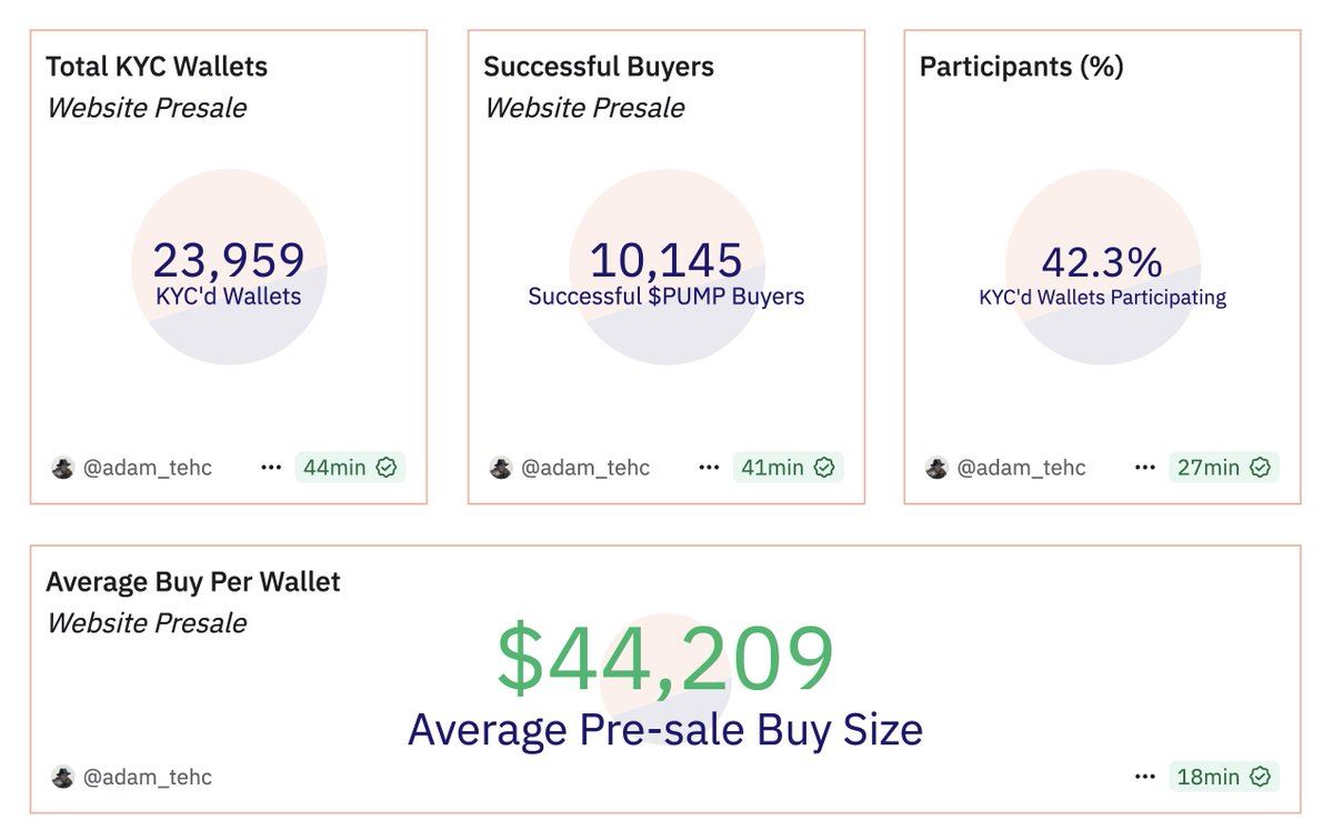 链上数据显示,通过该网站售出的代币总额达4.485亿美元,在23,959名通过KYC审核的用户中,有10,145个钱包参与了此次交易,购买率为42.3%,平均每个钱包的购买金额为4.4万美元。购买金额差异很大,从不到1,000美元到超过100万美元不等。