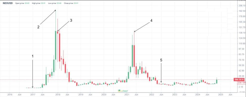 - 2017年12月,NEO价格达到196美元的历史最高点。