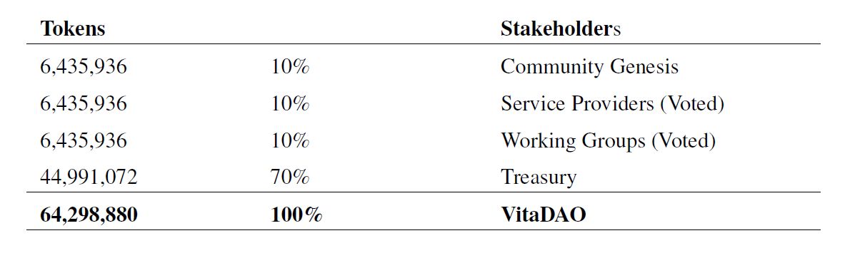 - 70%保留在VitaDAO金库中