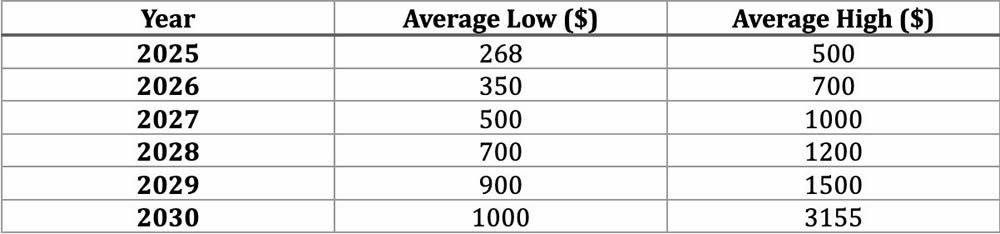 2029年:预计到2029年底,随着隐私优先金融工具的广泛采用及其与其他金融产品的整合,门罗币可能达到1,000至1,200美元之间的价格。