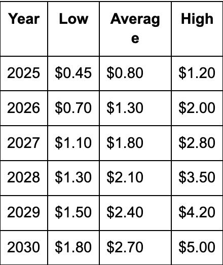 Cardano(ADA) 2025-2030年价格预测