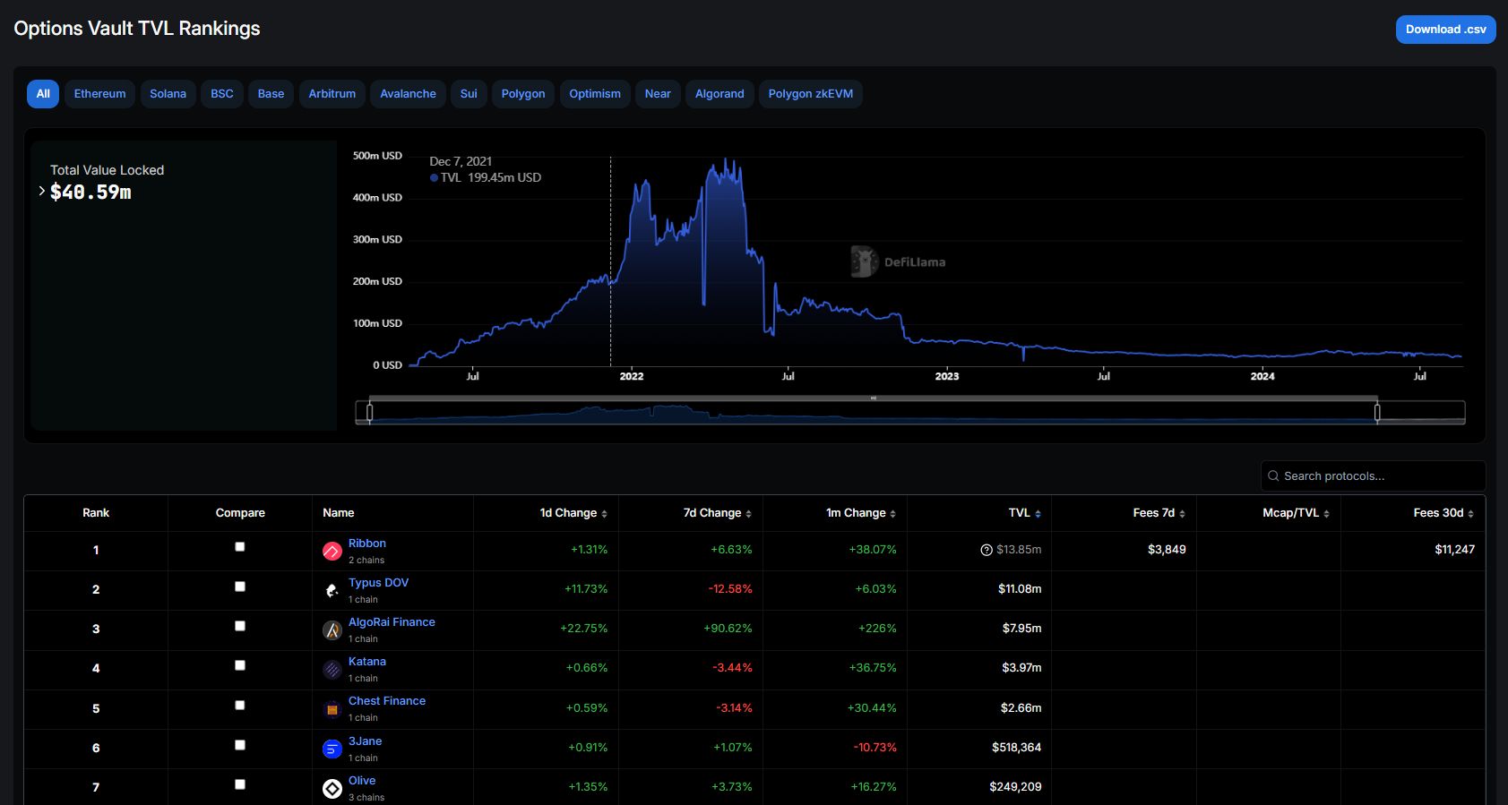 DeFiLlama上期权库TVL排名