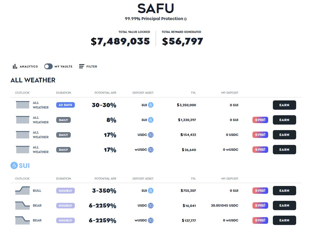 SAFU(Secure Asset Fund for Upside)是Sui生态上首个本金保值的结构化产品。
