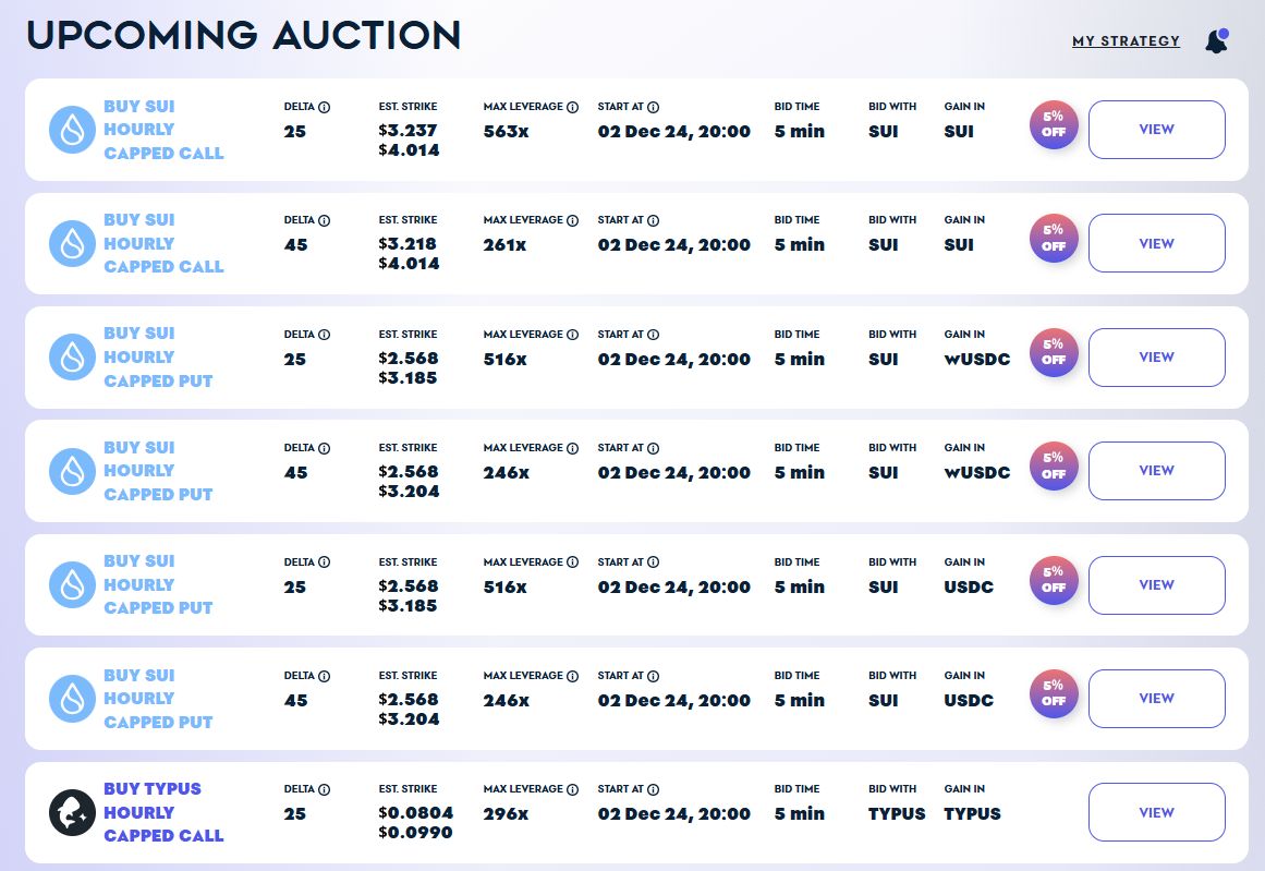 对于期权卖家,尤其是散户投资者来说,确定期权价格并提交订单比观察其他竞标者的行为后再提交价格要复杂得多。Typus的目标是让用户的决策过程尽可能简单(这一初衷在卖方金库中也有体现),只需点击一下即可竞标期权。
