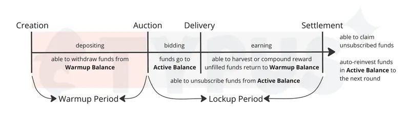 买方在Typus上购买期权时,采用的是优化的荷兰式拍卖方式。拍卖开始时,买入价(期权价格)会随时间递减,期权买家可以在拍卖期间提交想要购买的期权规模(合约规模)。拍卖结束时,以复合最后报价的最新买入价作为结算价(交割价)。如果没有完全匹配,则以最低限价交割。