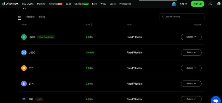 Phemex储蓄:赚取被动收入