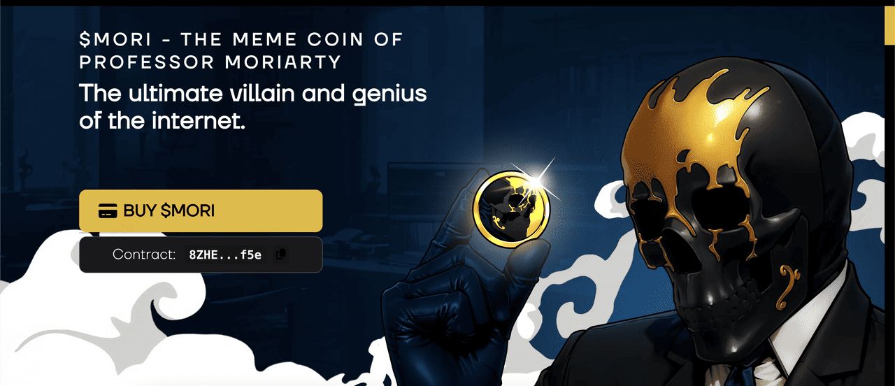 MORI Coin是一个基于Solana的模因代币,灵感来源于"Professor Moriarty",这位拥有超过320万订阅者和超过20亿次观看的俄语YouTuber。以其锐利的机智、黑暗幽默和哲学观点而闻名,Moriarty已经建立了拥有忠实粉丝群的社群,这群粉丝如今成为该代币爆炸性增长的动力。