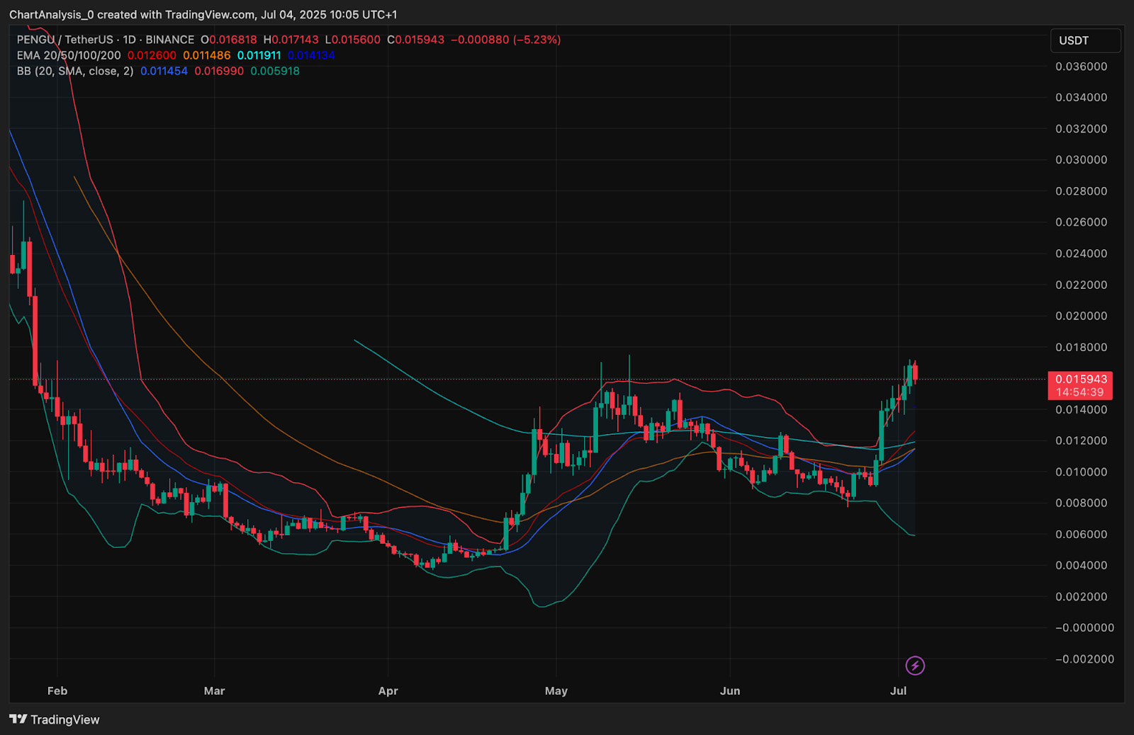 最近几个月,加密货币市场中的Pudgy Penguins (PENGU)引起了众多投资者的关注。经过一段时间的盘整后,这个项目展现出了令人瞩目的上涨势头,技术图表上也出现了一些积极的信号。许多交易者正在密切关注PENGU的价格走势,试图判断这波上涨是否会演变为长期的趋势转变。