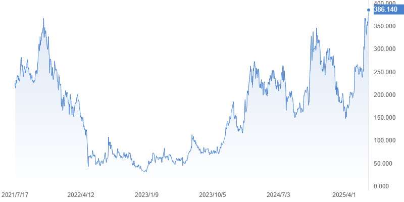 MicroStrategy被视为重要的比特币概念股,因为它自2020年起开始大规模购买比特币作为资本配置策略。截至2025年6月,MicroStrategy已持有超过59.2万枚比特币,约占比特币总供应量的2.8%,是全球持有比特币数量最多的公司。这一策略使其股价与比特币价格高度相关,成为投资者间接投资比特币的热门选择。