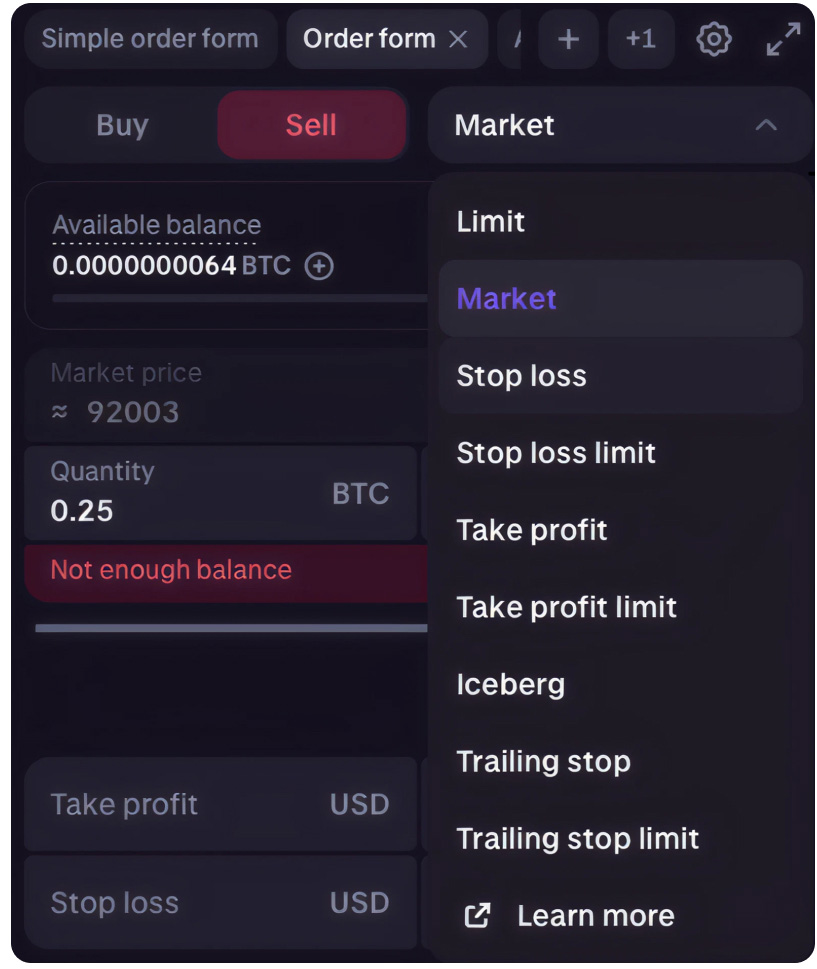 以下为Kraken平台上的订单操作示例。