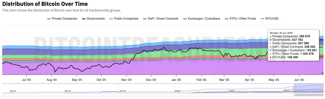 比特币随时间分布| 来源:BitcoinTreasuries