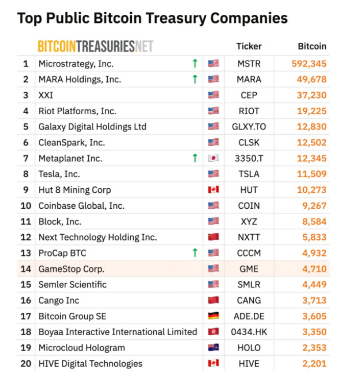 此举使 GameStop 成为第 14 大比特币企业持有者。