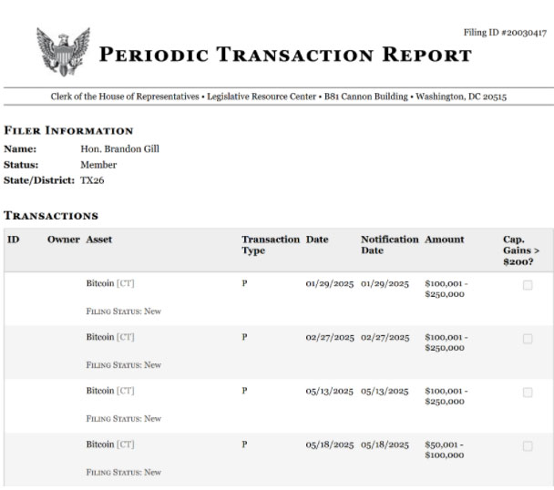 Gill的比特币购买披露文件。来源:众议院