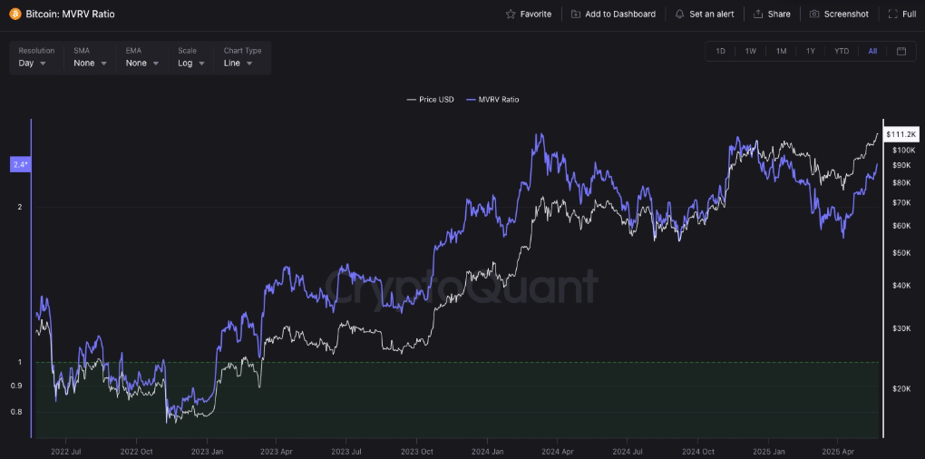 图片来源: Bitcoin MVRV Ratio (CryptoQuant)