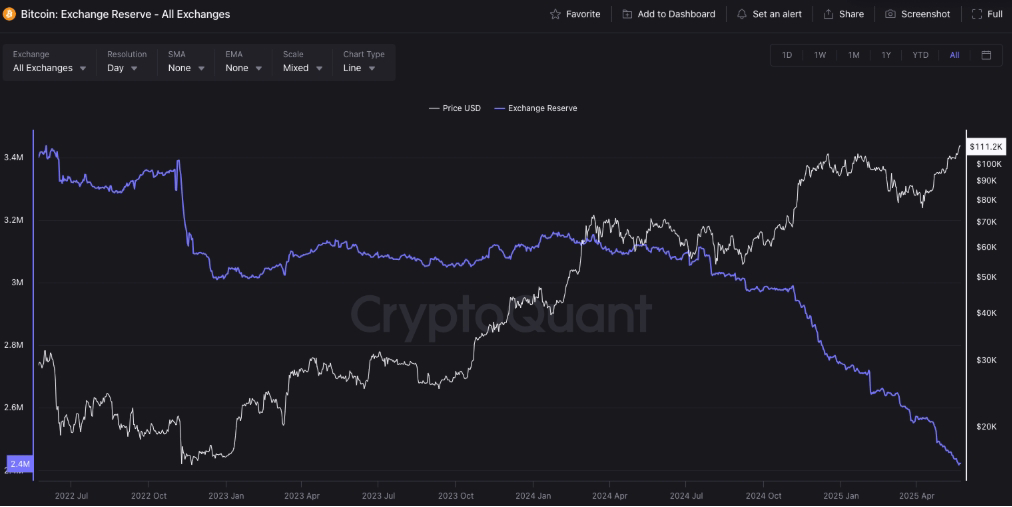 图片来源: Bitcoin Exchange Reserve (CryptoQuant)