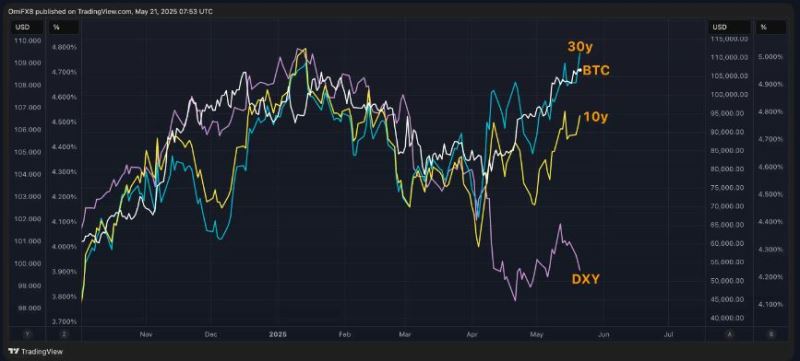 虽然30年期美债收益率已经升到5%以上,回到了1月的水平,但市场普遍认为这对比特币和黄金反而是利好因素。