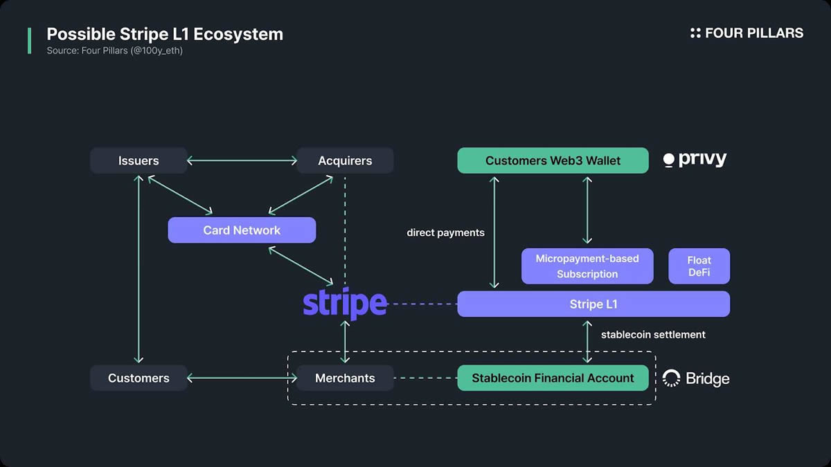 答:这种猜测主要基于Stripe近期的几个动作:收购稳定币公司Bridge、推出稳定币金融账户服务,以及收购Web3钱包公司Privy。这些举措为Stripe进入区块链领域奠定了基础,因此社区推测Stripe可能会推出自己的L1区块链。