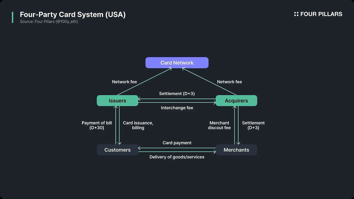 - 商家结算中介:PSP与银行合作或自己作为银行端,以结算发卡银行向商家收到的款项