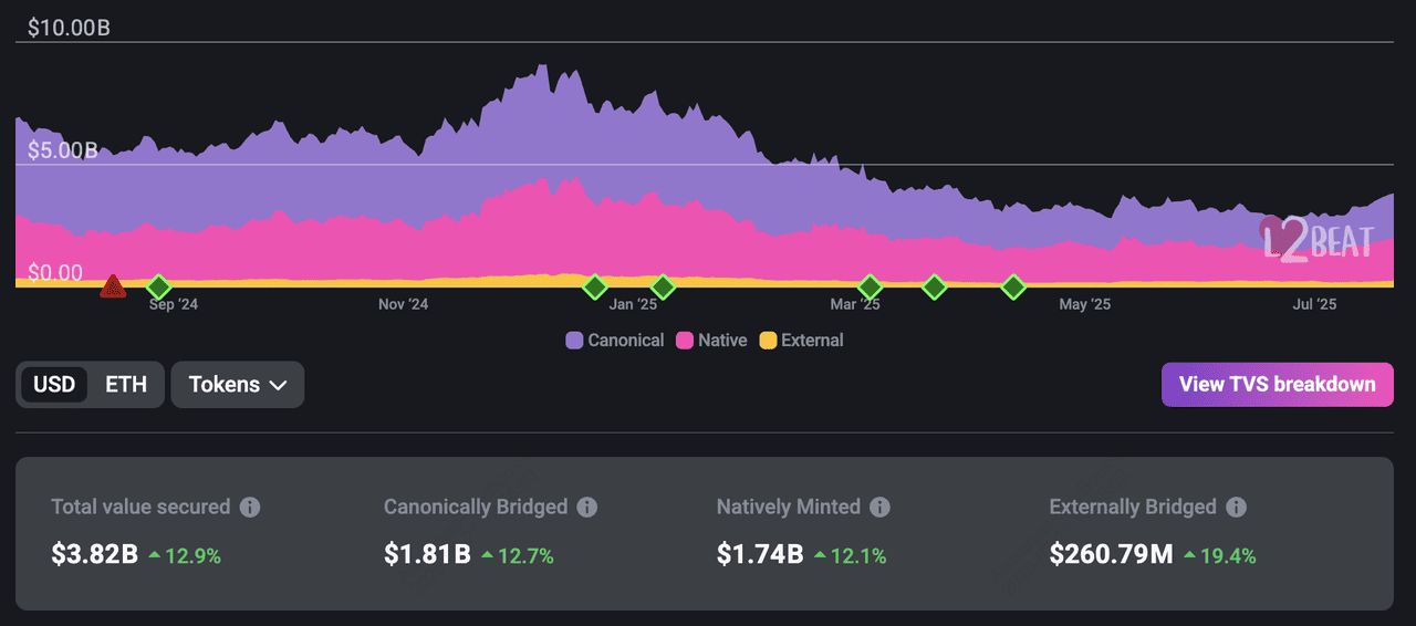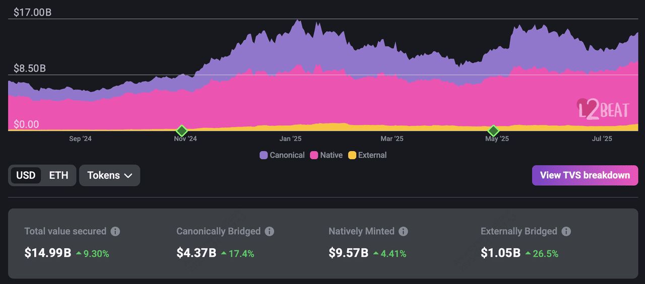 机构采用与监管顺风:随着美国GENIUS法案的通过和稳定币的普及,金融机构和支付服务提供商越来越多地利用Layer-2协议进行结算和资产代币化。