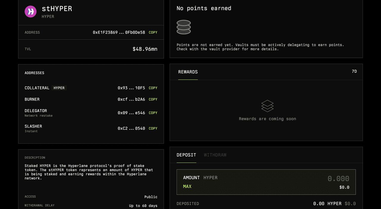 • 流动质押(stHYPER):允许用户在保持流动性的同时获得奖励。