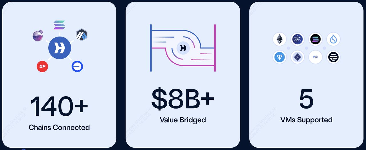在当今区块链世界,不同链之间的交流一直是个难题。Hyperlane就像一座桥梁,让各种区块链能够顺畅对话。作为发展最快的跨链协议之一,它已经连接了140多条区块链,桥接了82亿美元的总价值,支持五种不同的虚拟机,还有一群活跃的验证者确保跨链消息的安全。这种模块化的安全模型和流动质押代币(stHYPER)让Hyperlane在多链未来中扮演着越来越重要的角色。
