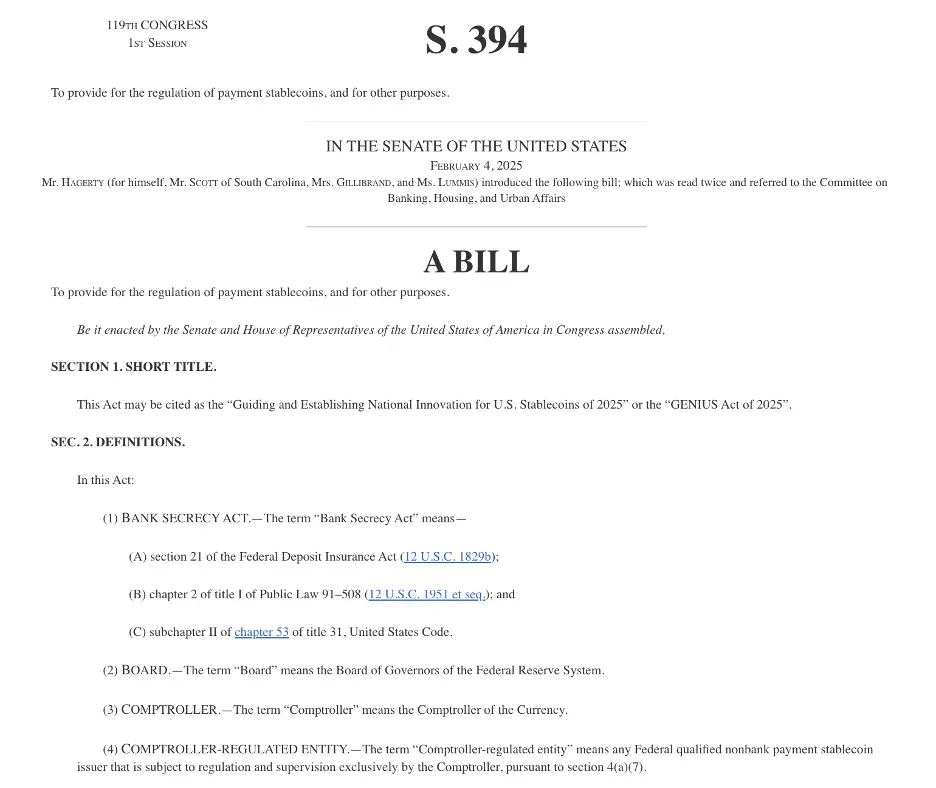 另外,美国最近的立法动向,尤其是参议院的《GENIUS法案》,标志着加密美元稳定币监管明确性的重要转折点。