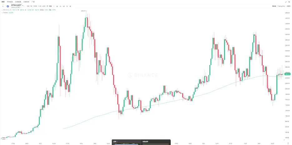 在经历了长期低迷后,在2025年5月,ETH重新站上了周线级别的MA200——这是牛市回归的最经典指标之一。