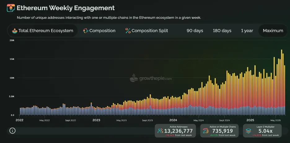 除了价格之外,更广泛生态系统的信号表明Ethereum正日益深度融入科技、商业乃至政治的结构中。