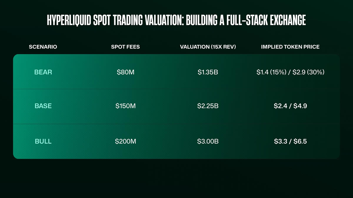 每个业务领域都进行独立建模,然后汇总得出一系列可能的代币估值。在某些情况下,我们还会添加20%的溢价,以反映HYPE作为实用型代币可能存在的稀缺性或市场需求。