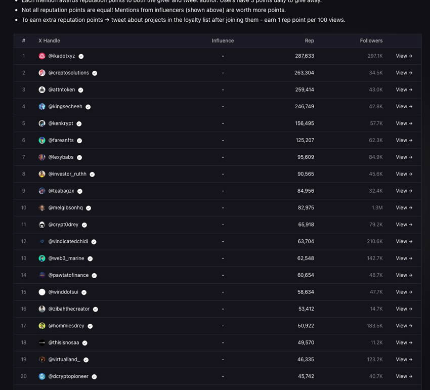 GiveRep是一个建立在Sui区块链上的SocialFi平台,它的核心目标是将用户在社交媒体上的活动,特别是在X平台上的互动,转化为可量化的链上声誉积分(REP)。