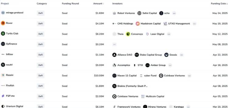 令人惊讶的是,近期 DeFi 领域的种子轮融资数量锐减:5 月仅 4 个项目,4 月也只有 5 个。好在项目数量减少反而更便于逐个研究😉