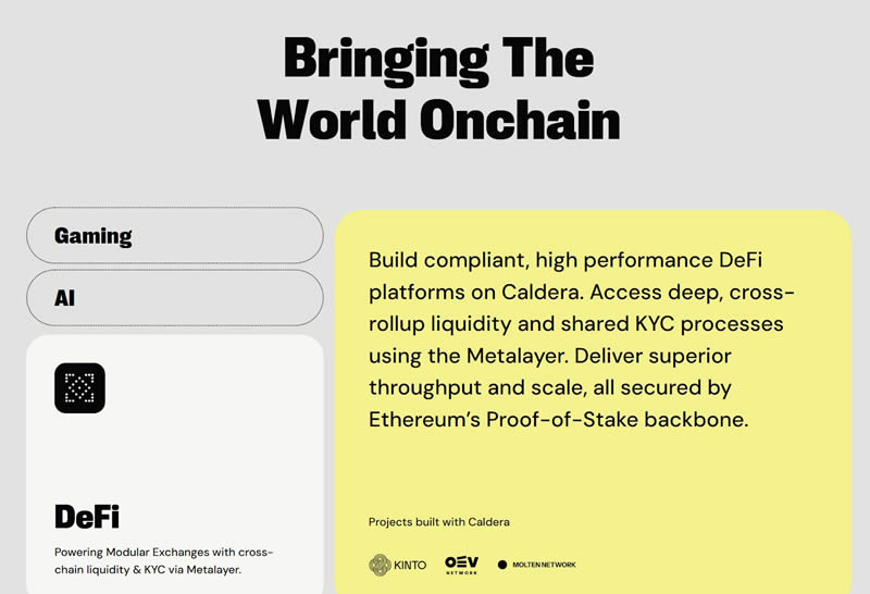 使用Caldera能够建立模块化、能整合跨链流动性、并高速低成本的DeFi项目,同时也能利用以太坊的生态资源。