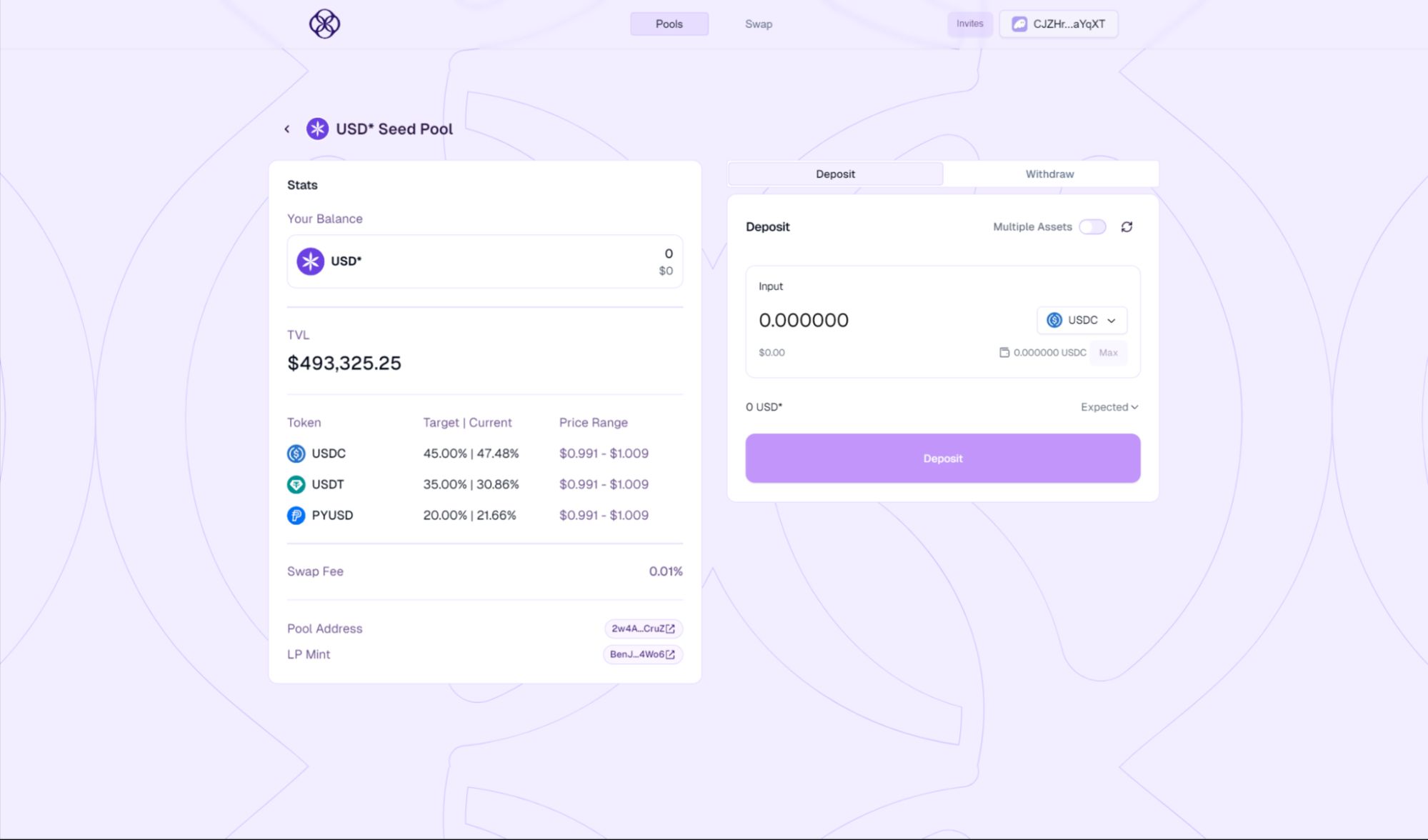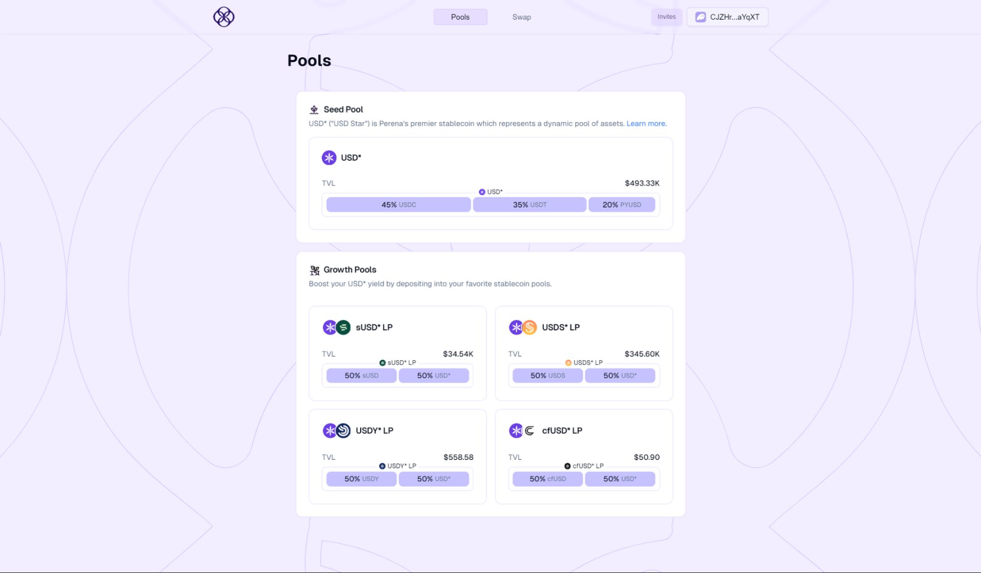 种子池是核心流动性中心,包含了USDC、USDT和PYUSD等广泛应用于DeFi的稳定币。USD Star是代表种子池所有权的流动性提供代币。随着交换费用的产生,它的价值会不断增长,并自动提升回报。