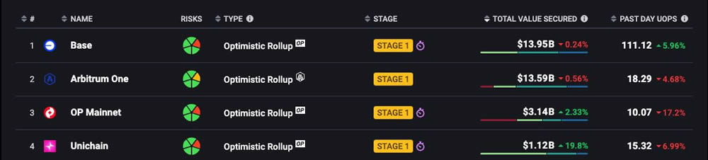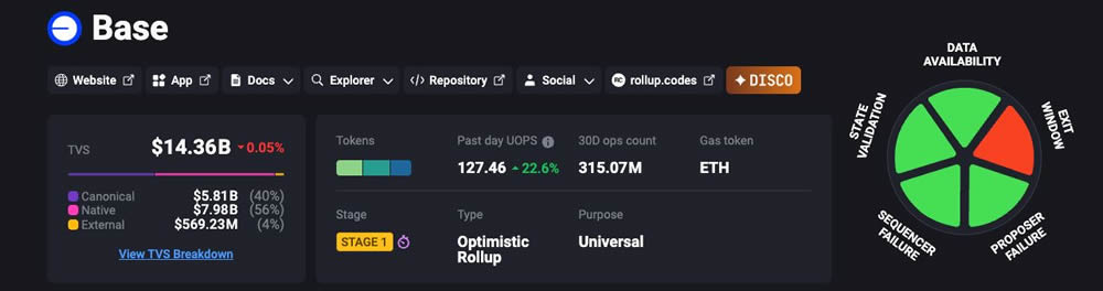 目前,Base网络上的担保价值已经突破143亿美元,今年以来增长了惊人的173%,使其在L2阵营中按担保总价值(TVS)排名第一,略微领先于Arbitrum。如果按跨桥和原生资产的锁定总价值(TVL)计算,Base也达到了约137亿美元的规模。