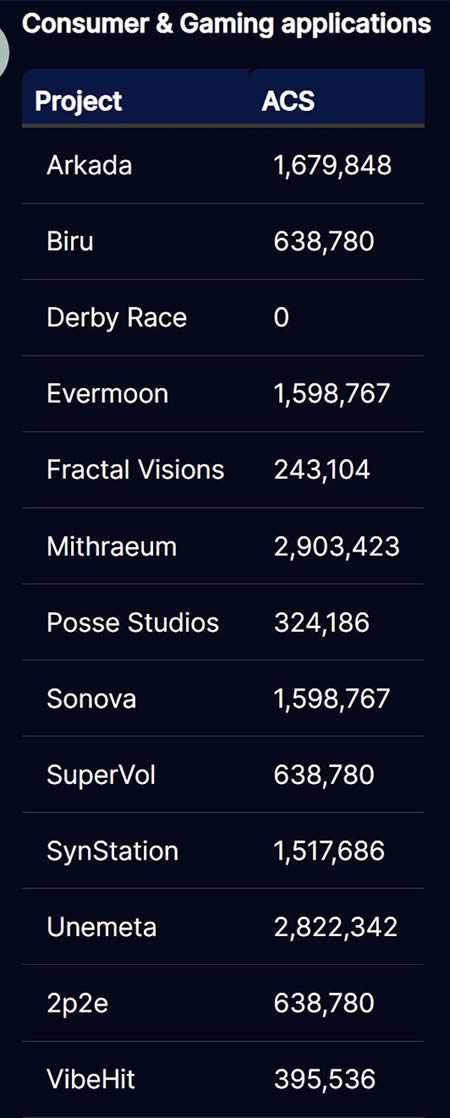 链上活跃项目主要是DeFi类,非DeFi项目可以参考最新一期ACS分配,通常越活跃的项目能得到越多的分配。